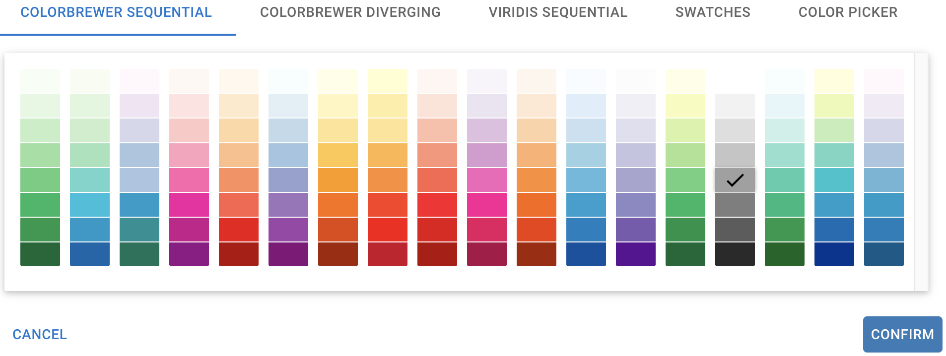 Click a light grey color tile in a color palette. Click CONFIRM.